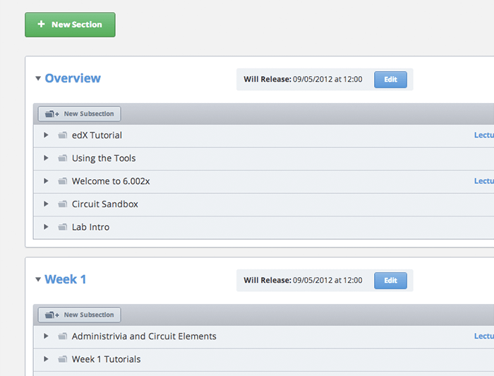 The backbone of your course is how it is organized. Studio offers an Outline editor, providing a simple hierarchy and easy drag and drop to help you and your students stay organized.